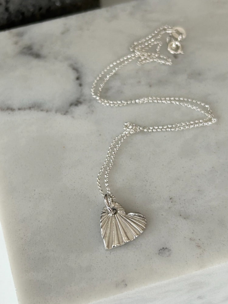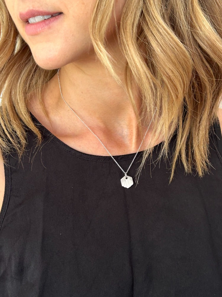 A mini version of our popular Starburst necklace. This eye-catching, delicate pendant is made from solid, fine silver and sits on a 16inch, sterling silver mini belcher chain. It is hallmarked by the London Assay Office. Choose from either a heart or hexagon shape.
